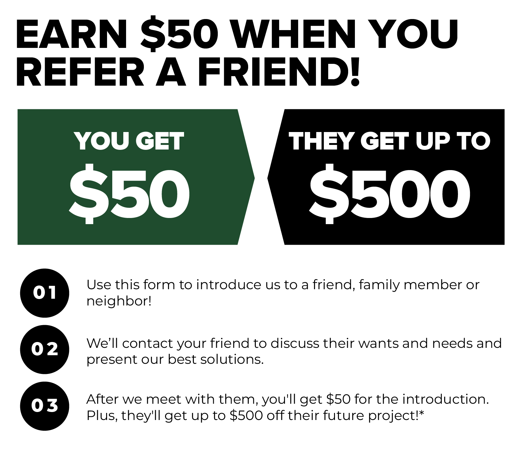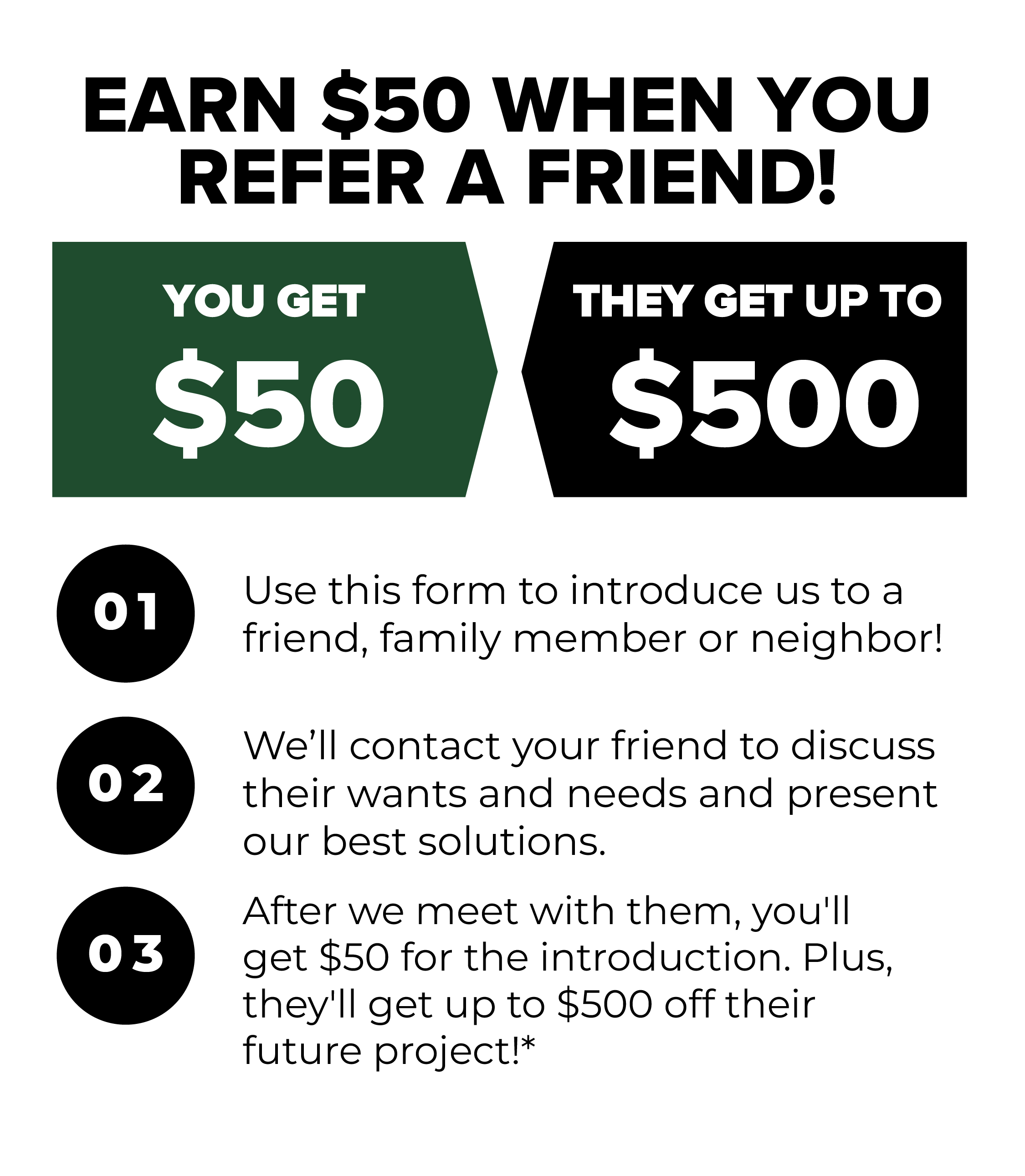 We'll reach out to your referral to find out if they could use our services and offer them special "Friend & Family" savings.