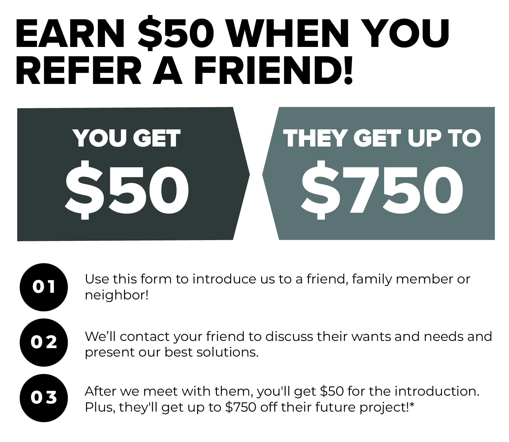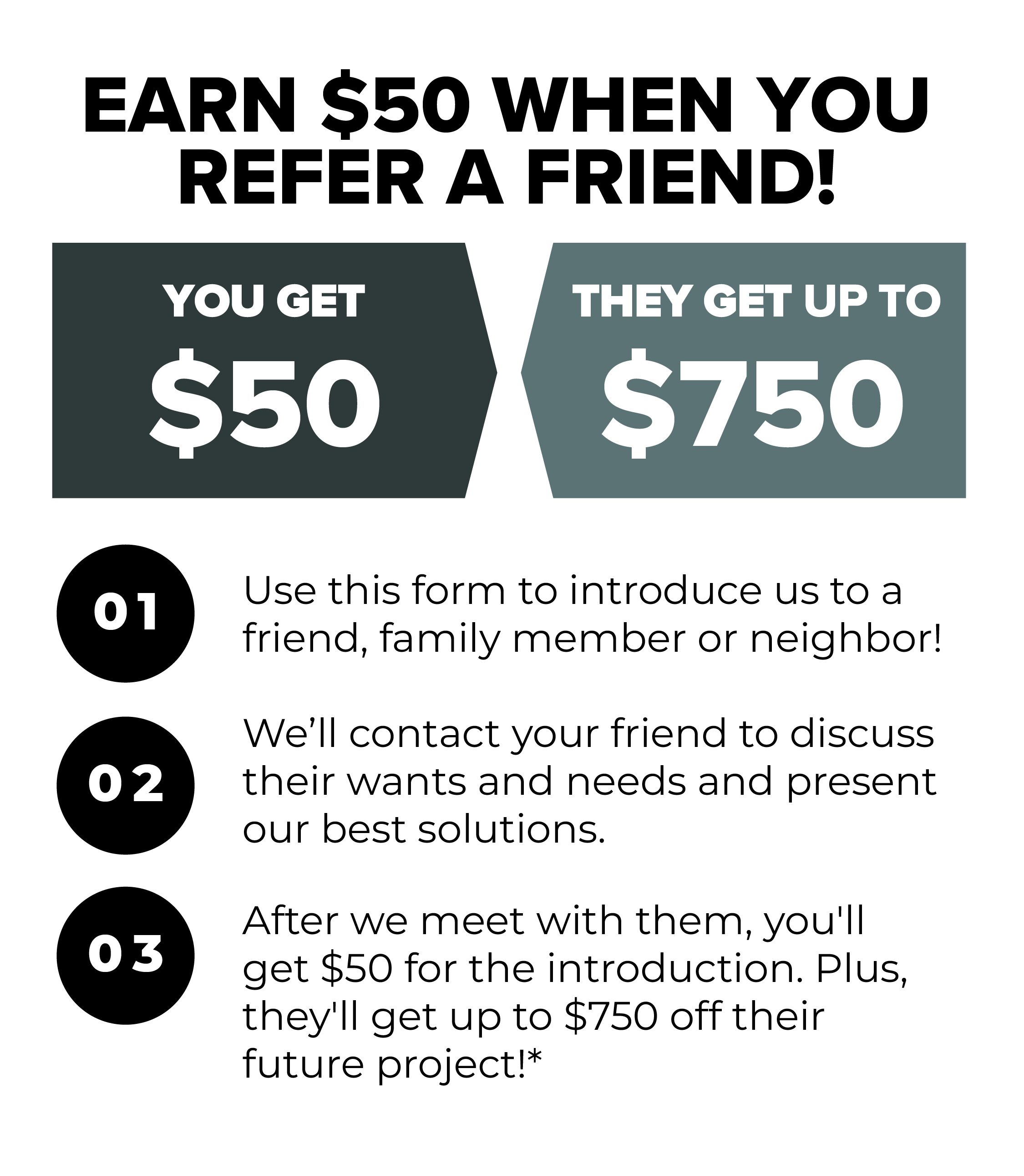 We'll reach out to your referral to find out if they could use our services and offer them special "Friend & Family" savings.