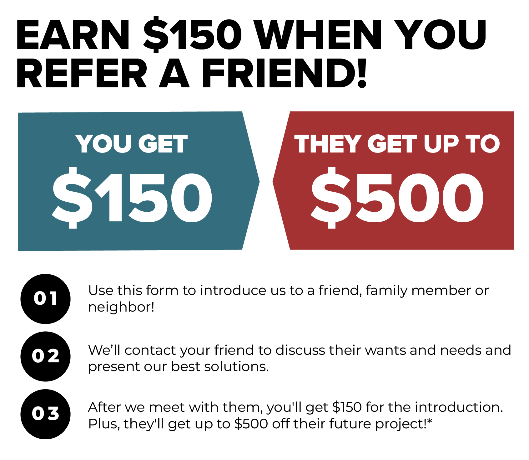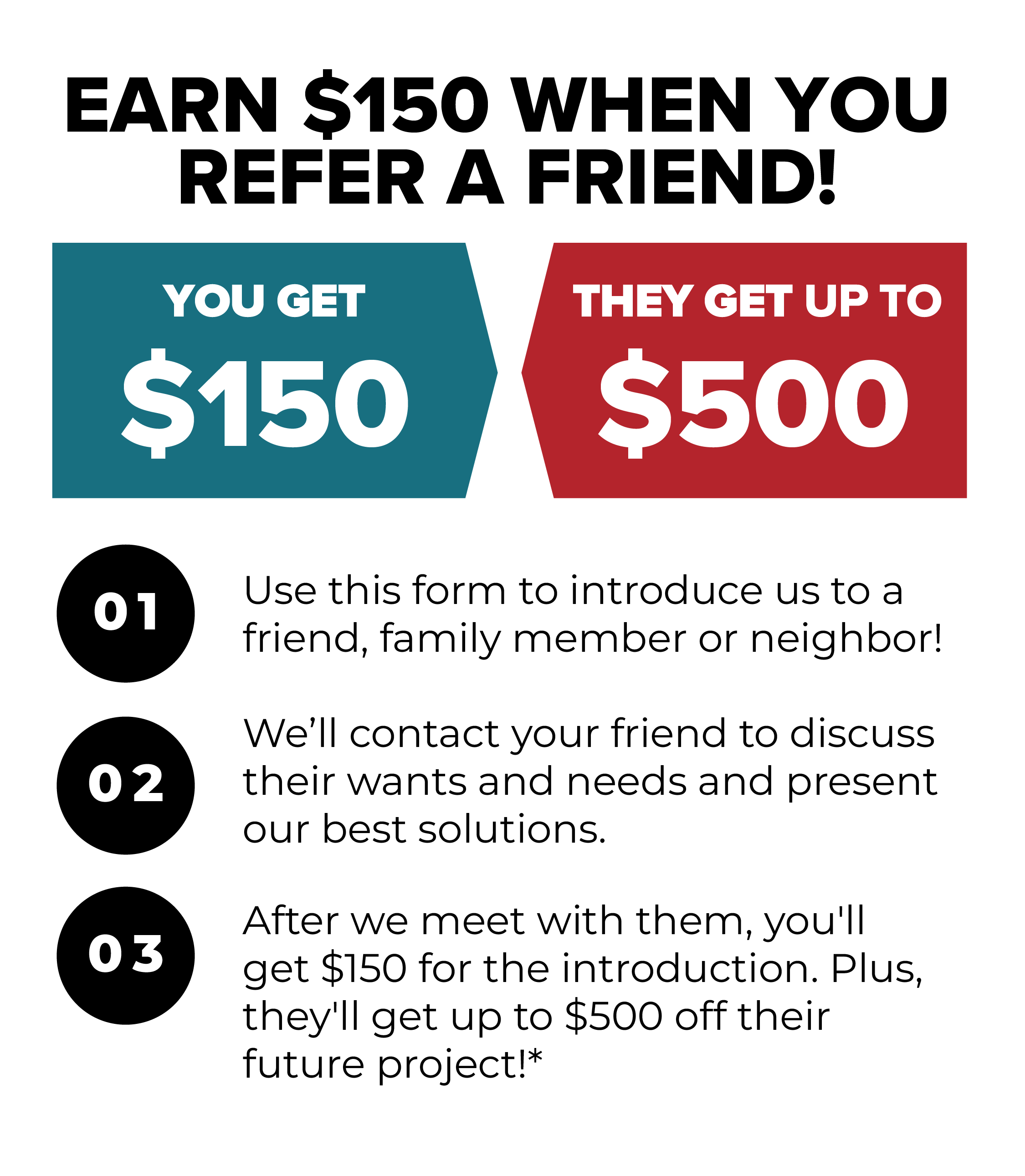 We'll reach out to your referral to find out if they could use our services and offer them special "Friend & Family" savings.